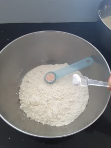 粉類とは小麦粉と塩とベーキングソーダです。クッキーに無塩バターを使うレシピが多いですが、私は普通のバターを使います。そしてさらに塩も追加(今回はヒマラヤピンクソルト使用)します。クッキーは甘い食べ物ですがその中にかすかな塩気があるとただ甘いだけよりも食べやすく、上にアイシングを載せるとさらに甘くなって「ただ甘ったるいだけのクッキー」ではなくなり食べてて美味しいクッキーになりますよ。